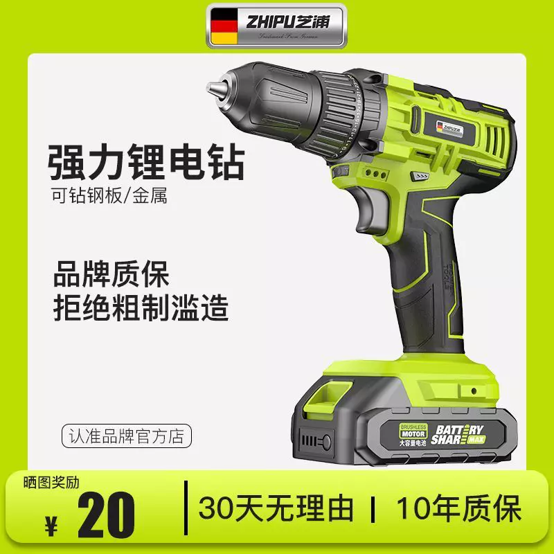 芝浦手电钻锂电钻大功率家用冲击充电钻打墙锂电池手枪钻电动螺丝